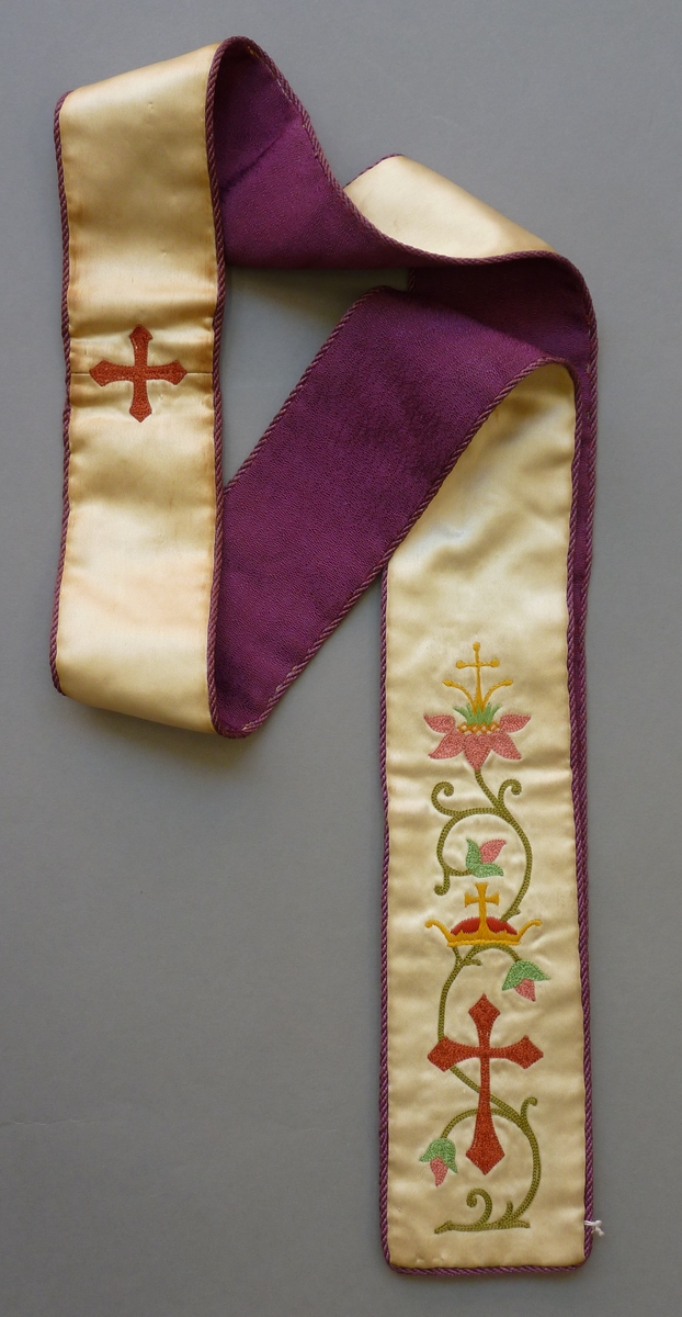 Paars-witte bedieningsstola geborduurd met bloemranken