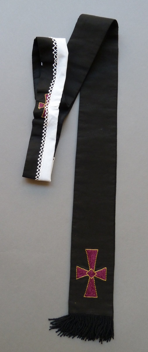 Zwarte stola met paarse geborduurde kruisjes