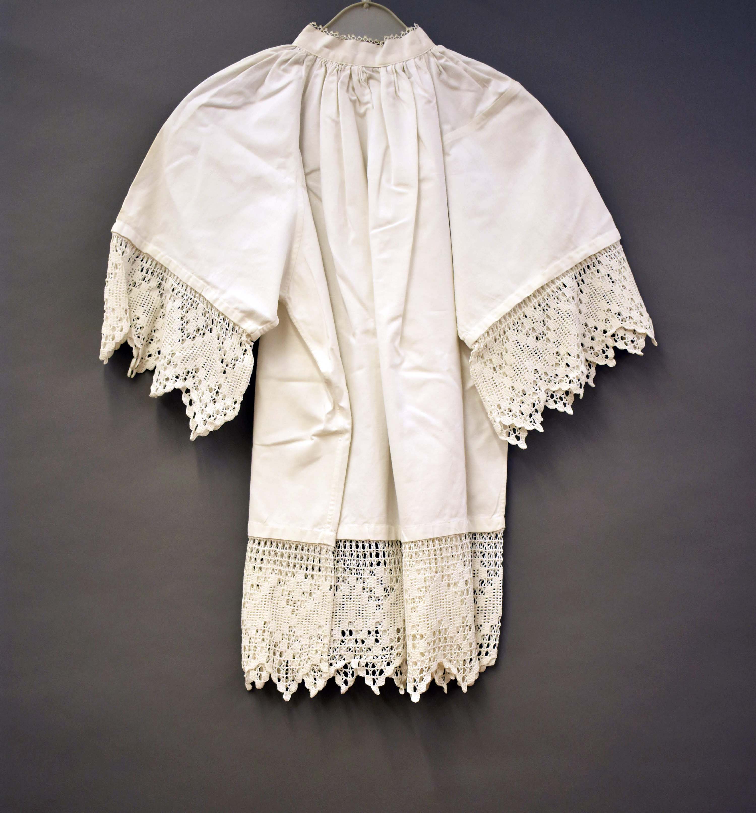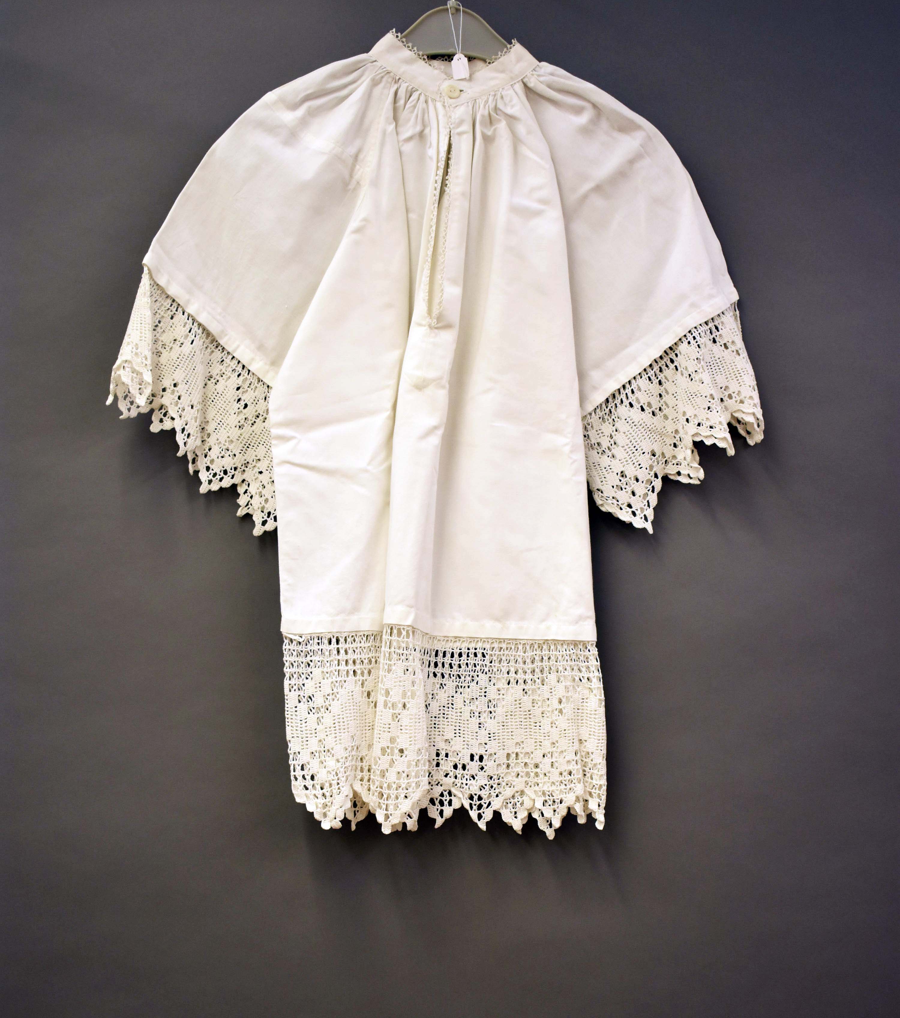 Kindersuperplie met rand gehaakte kant, frivolité langs hals
