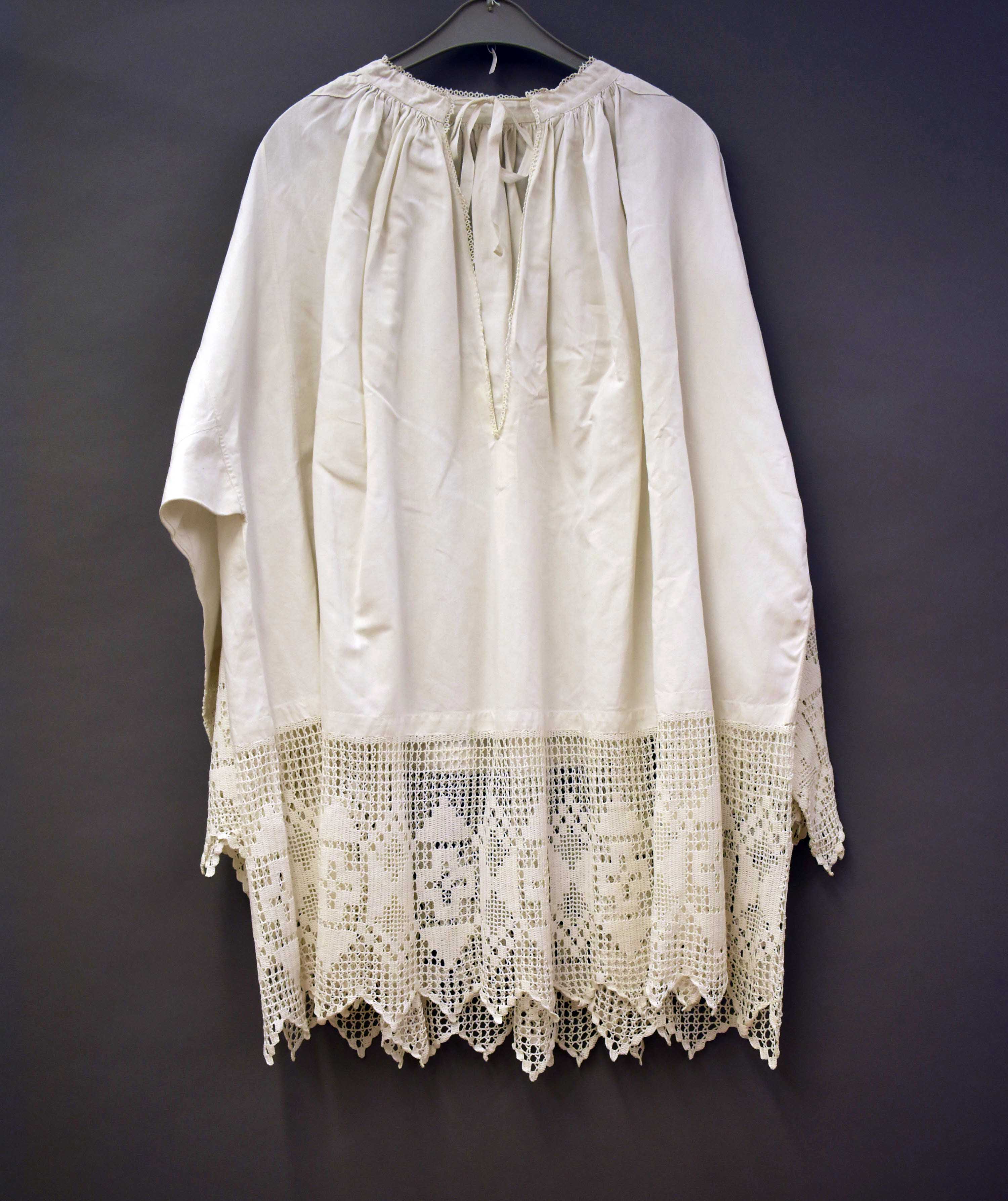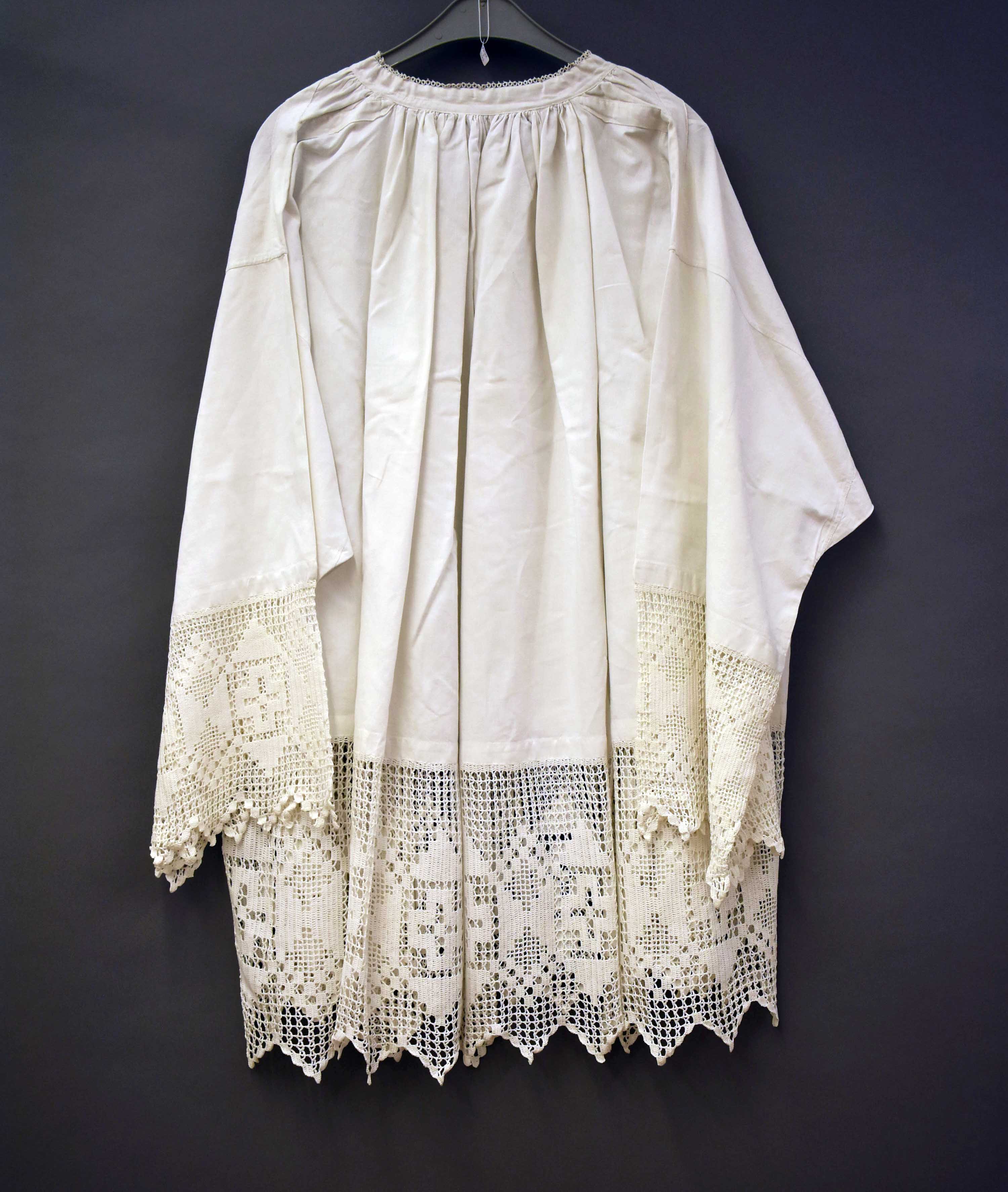 Superplie met rand gehaakte kant met kruisen, langs hals frivolité