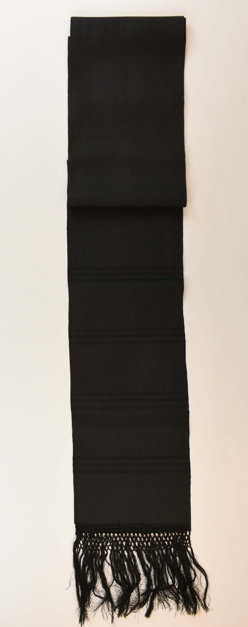 Zwarte sjerp van priestergewaad met acht maal drie ingeweven banen, met franje
