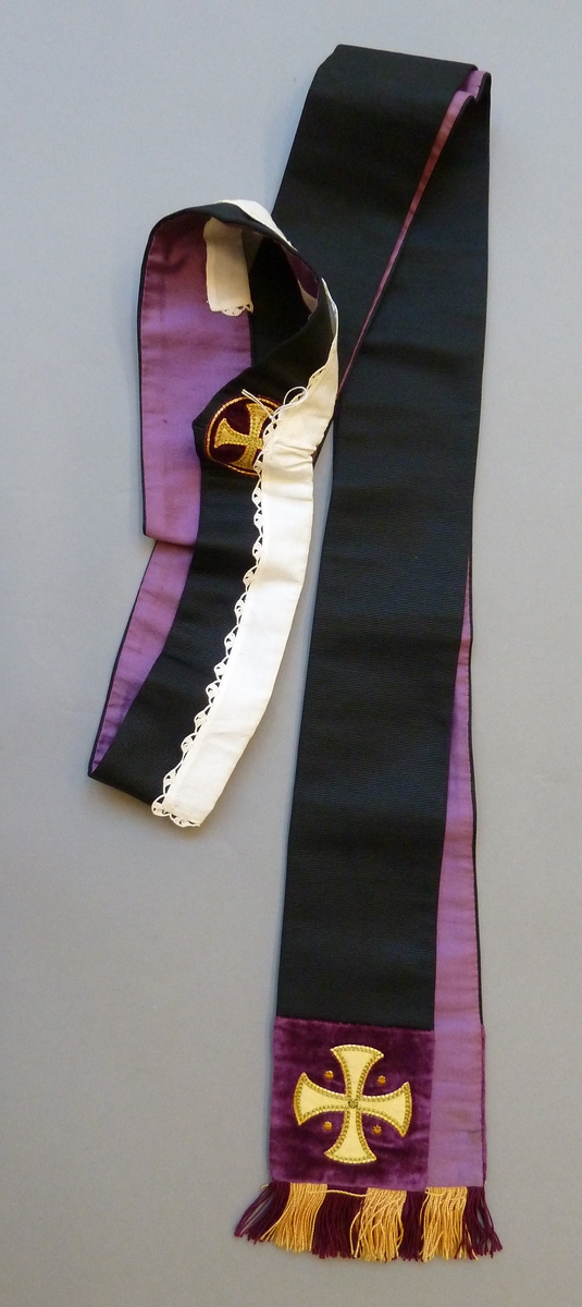 Zwarte stola met geappliceerd kruisnimbus in paars en groen