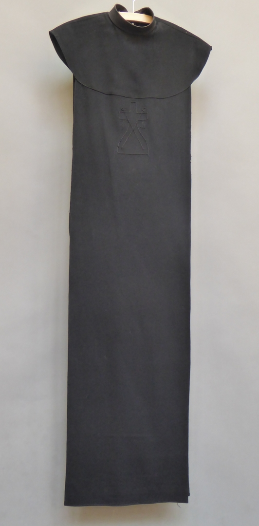 Ordekleding franciscanessen: zwarte scapulier met geborduurde passiewerktuigen