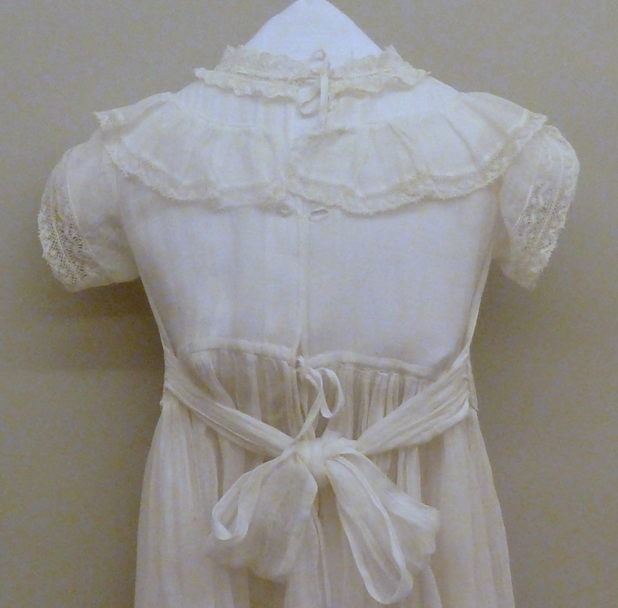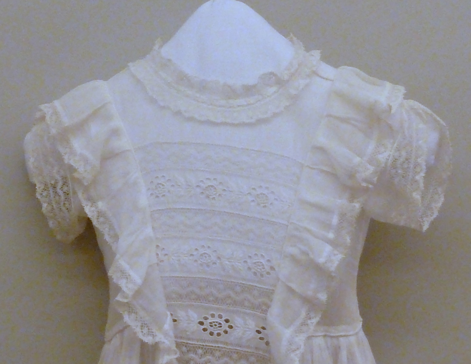 Doopjurk met entredeux van stroken machinale kant en broderie Anglaise