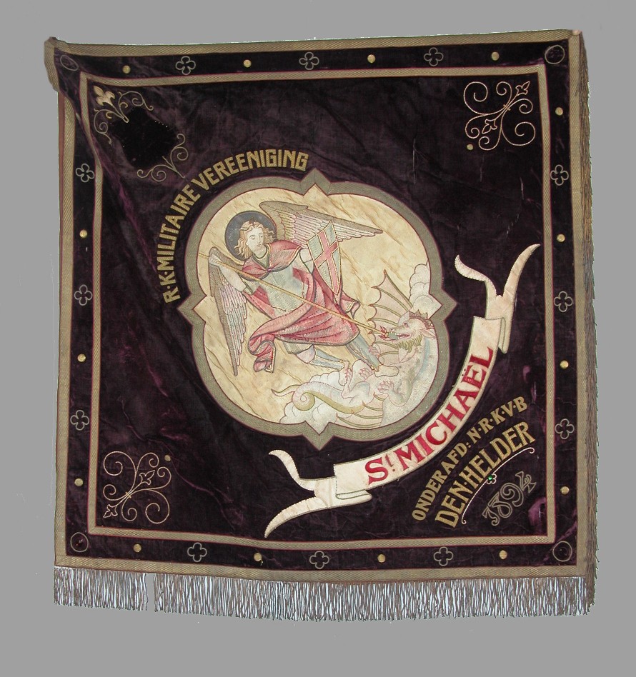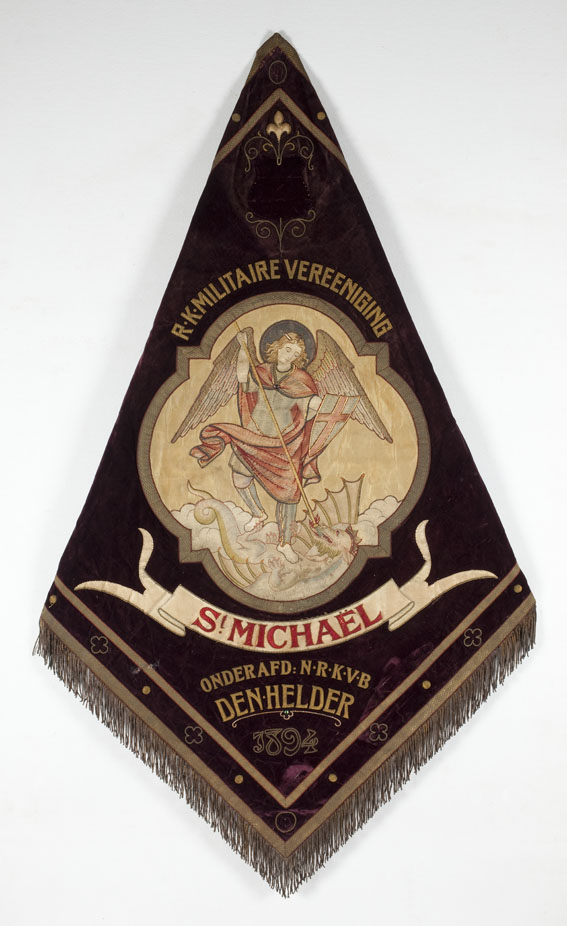 Rood vaandel van de R.K. Militaire Vereeniging St. Michael te Den Helder met H. Michael