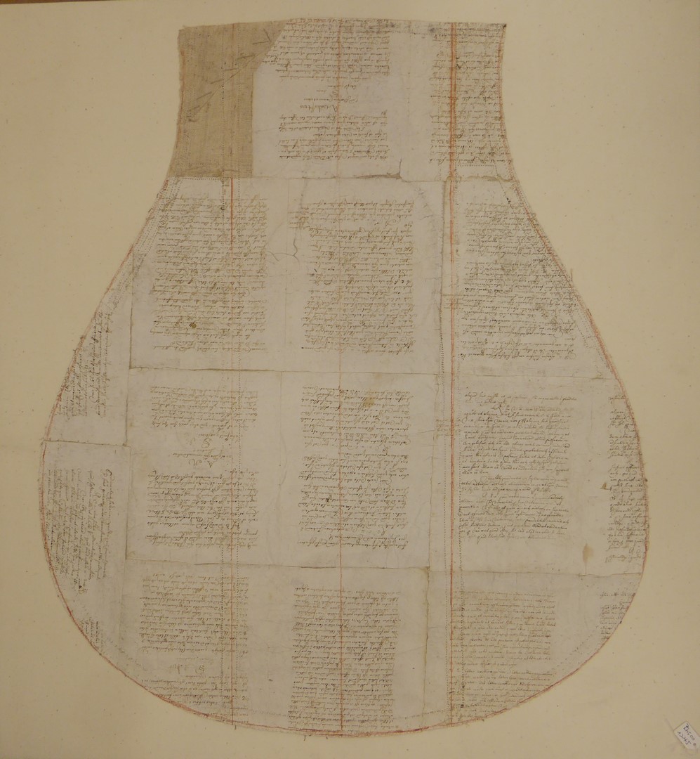 Kazuifelvulling, voorzijde, van beschreven bladzijden
