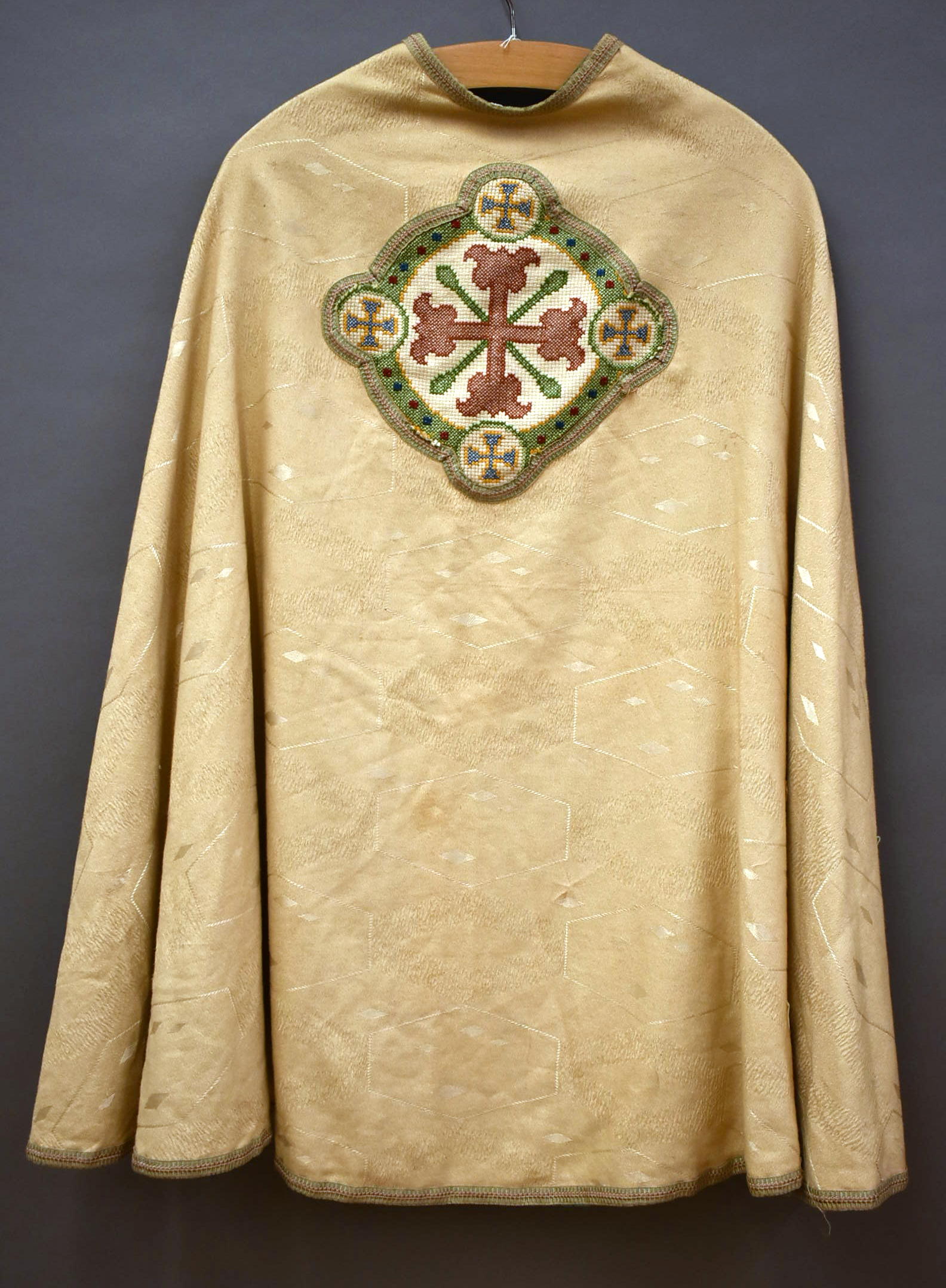 Witte kinderkoorkap met geborduurd vierpas met kruis