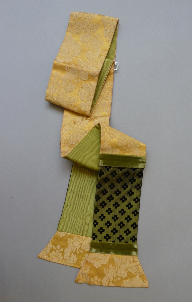 Gele manipel met zwart fluwelen kruisjes op groene uiteinden