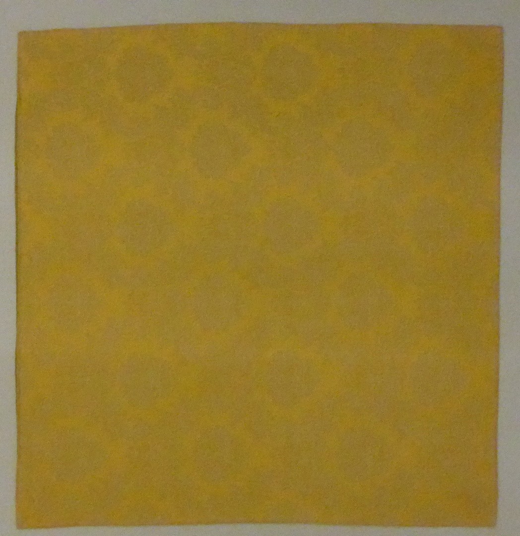Geel kelkvelum met florale motieven, achterzijde groene moirézijde