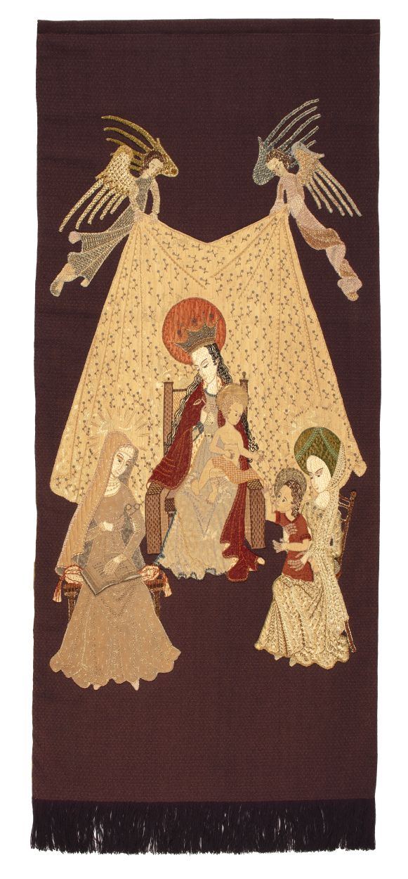 Wandkleed met Anna-te-Drieën, Elisabeth met Johannes en twee engelen die een doek dragen
