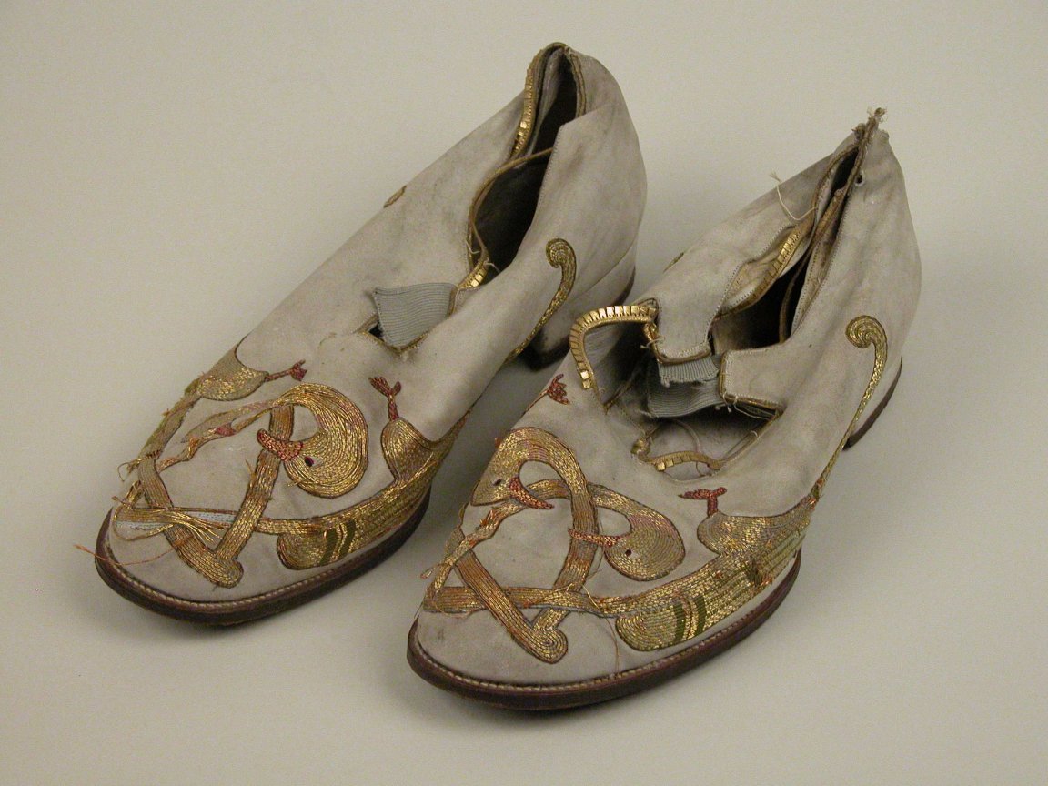 Witte rechterschoen van Dom Jean de Puniet met twee vogels