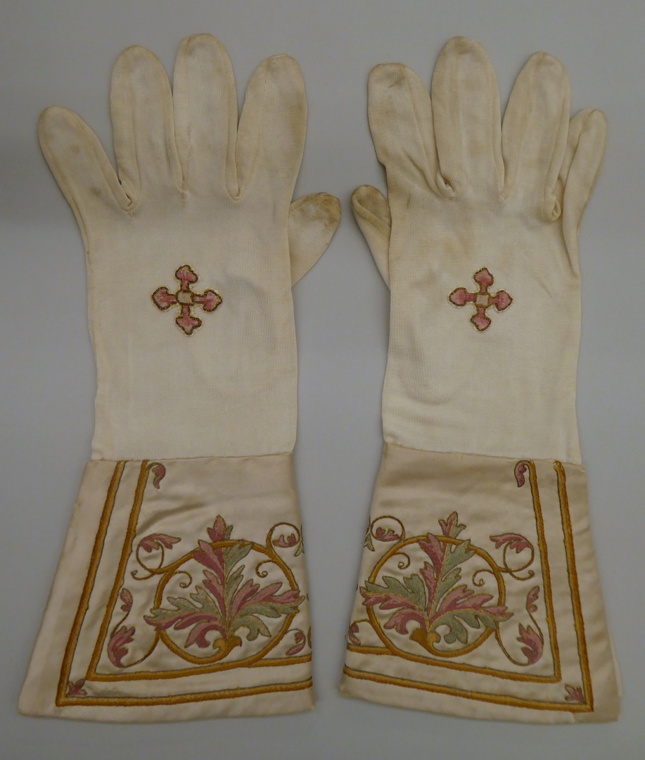 Witte linkerhandschoen van Dom Jean de Puniet met bladmotieven