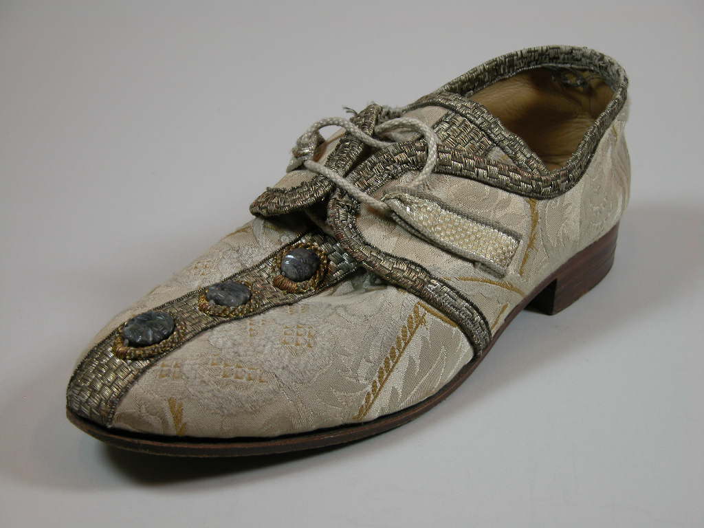 Witte linkerschoen gedecoreerd met galons en drie stenen