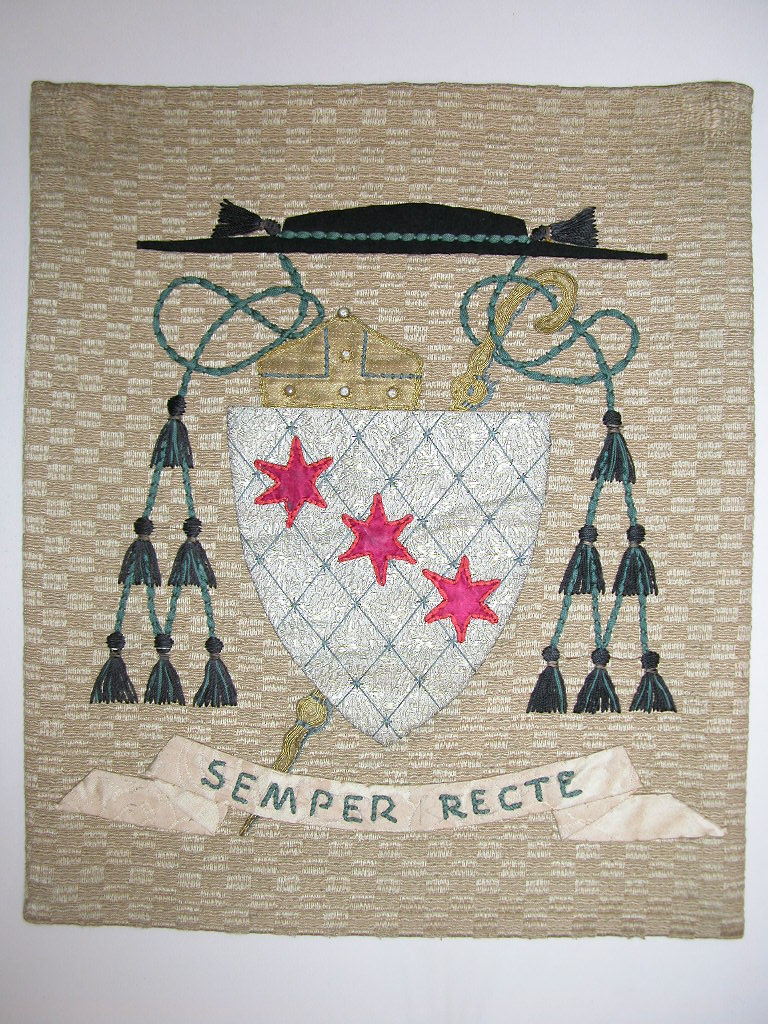 Borduursel met wapenschild van Dom Maximiliaan Mähler (1942-1965) met "semper recte"