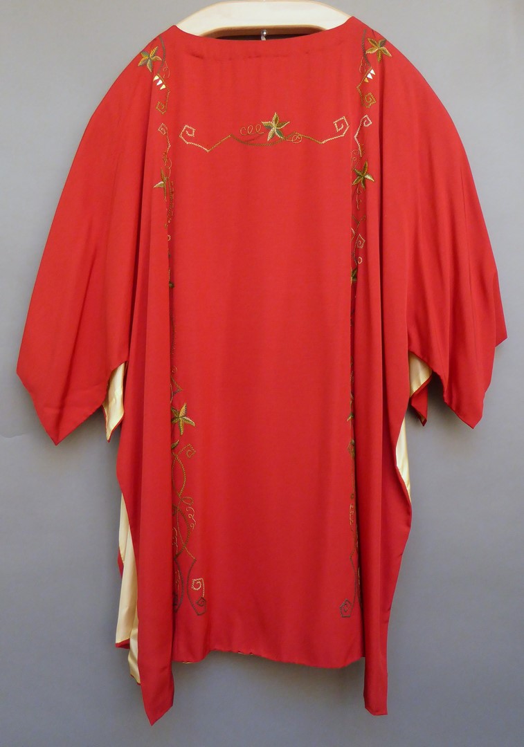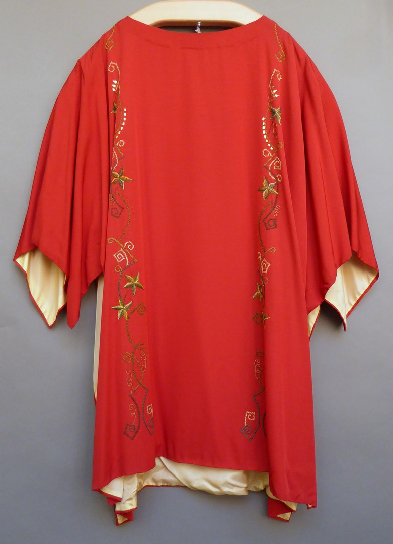 Rode dalmatiek met geborduurde bladmotieven