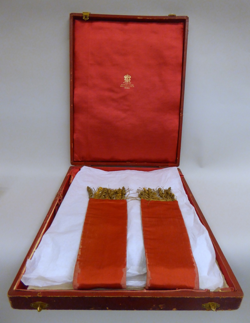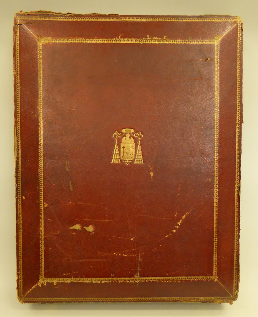 Rode foedraal met goudgestempeld kardinaalswapen van Willem Marinus van Rossum, voor mijter StCC t447a
