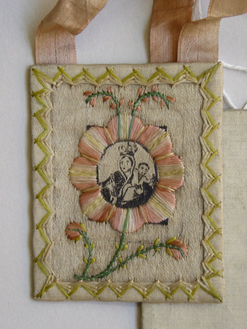 Scapulier met gedrukt O.L.V. van de Karmel in geborduurde roos