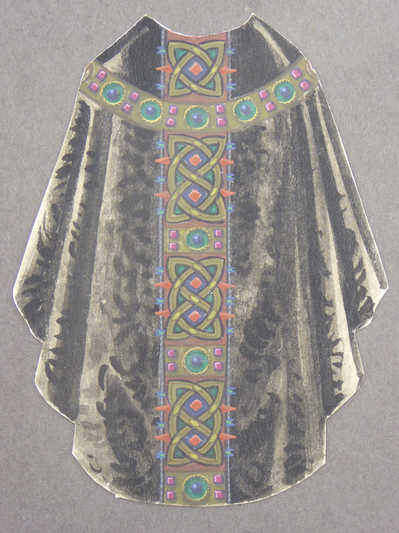 Ontwerp zwart kazuifel met groen gaffelkruis