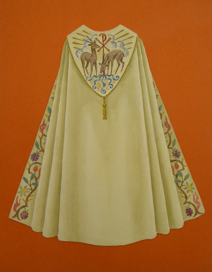 Ontwerp witte koorkap met herten bij levensbron