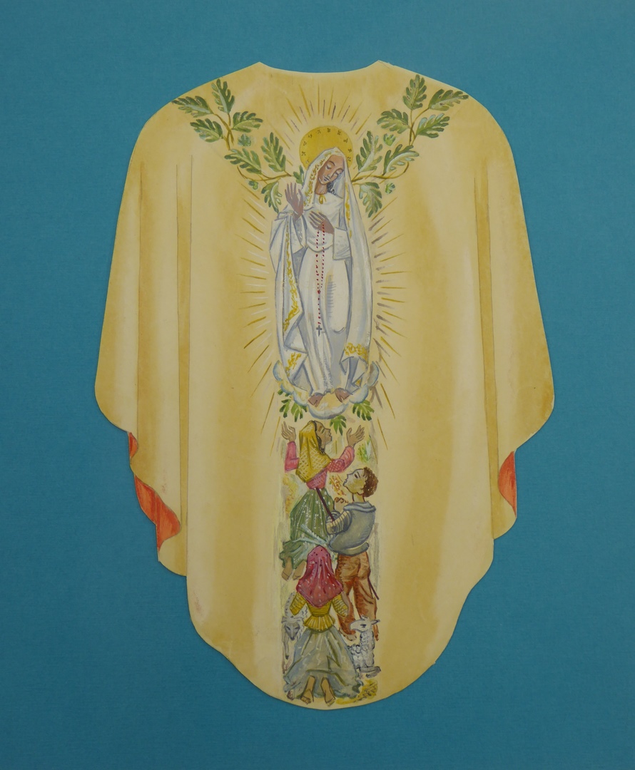 Ontwerp wit kazuifel met de kinderen van Fatima