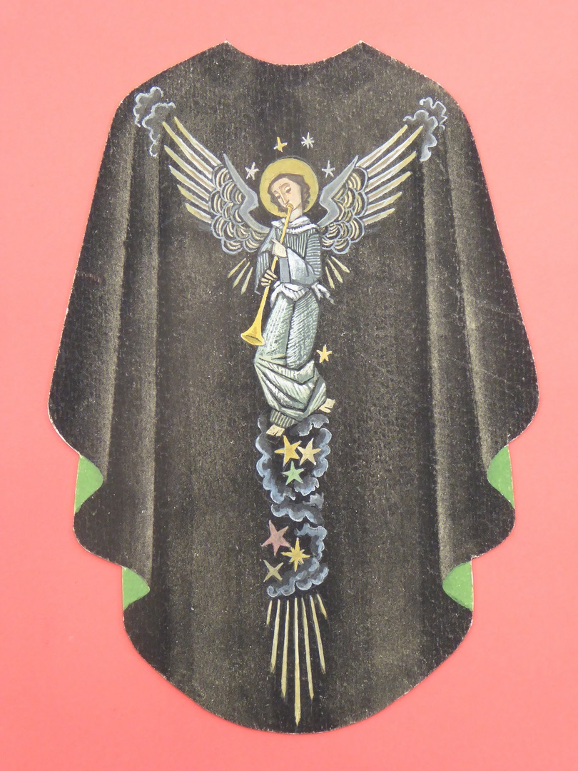Ontwerp zwart kazuifel met engel met bazuin