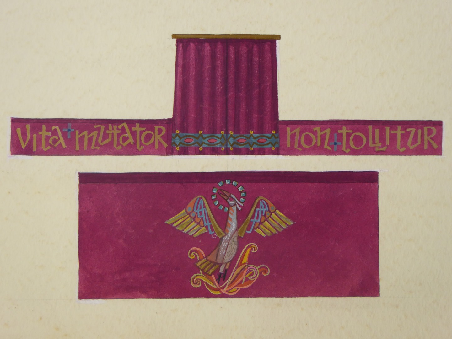 Ontwerp tabernakelvoorhang met de tekst Vita mutatur non tollitur
