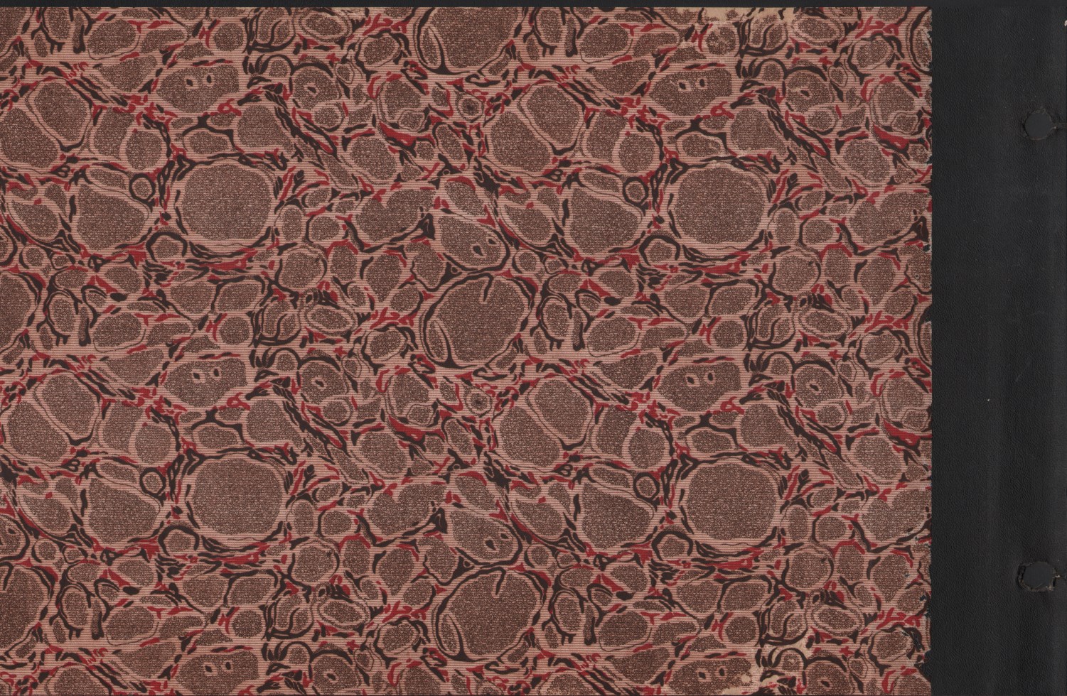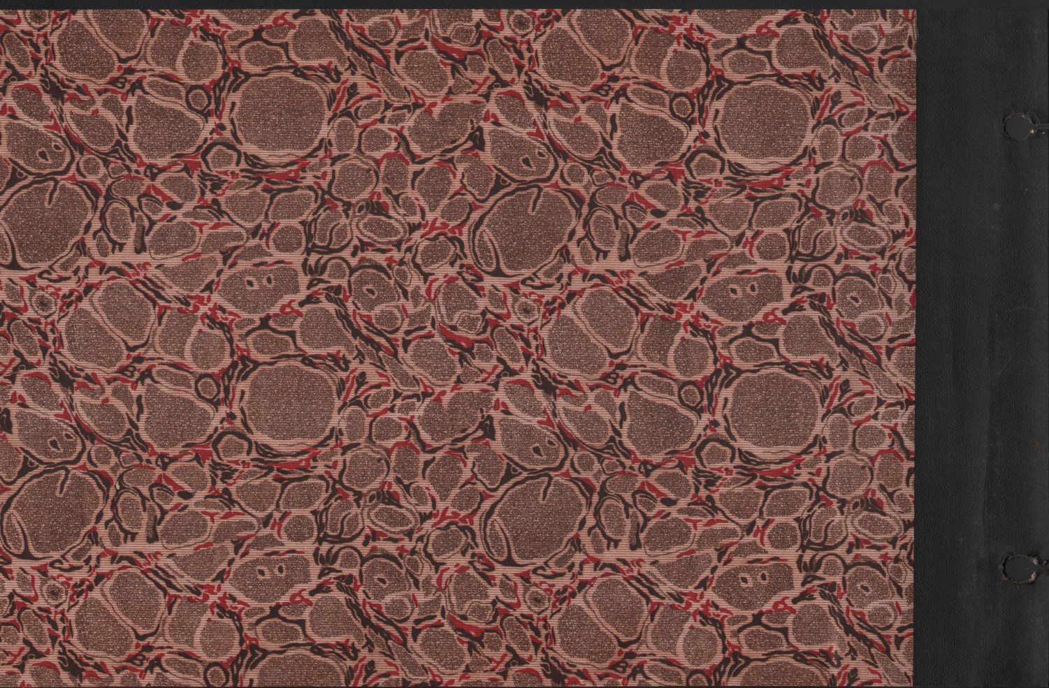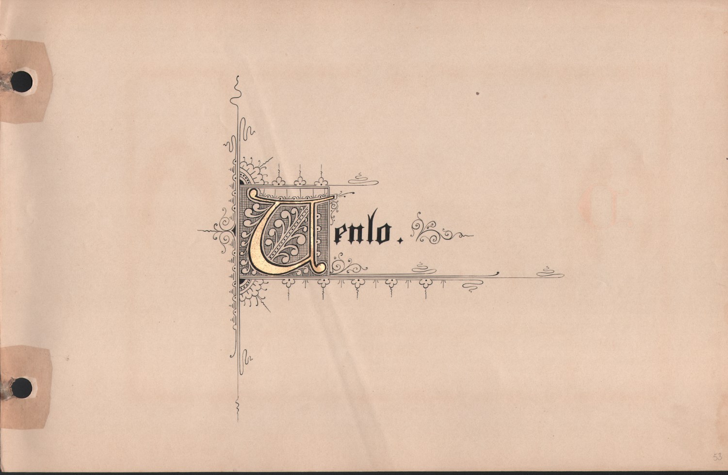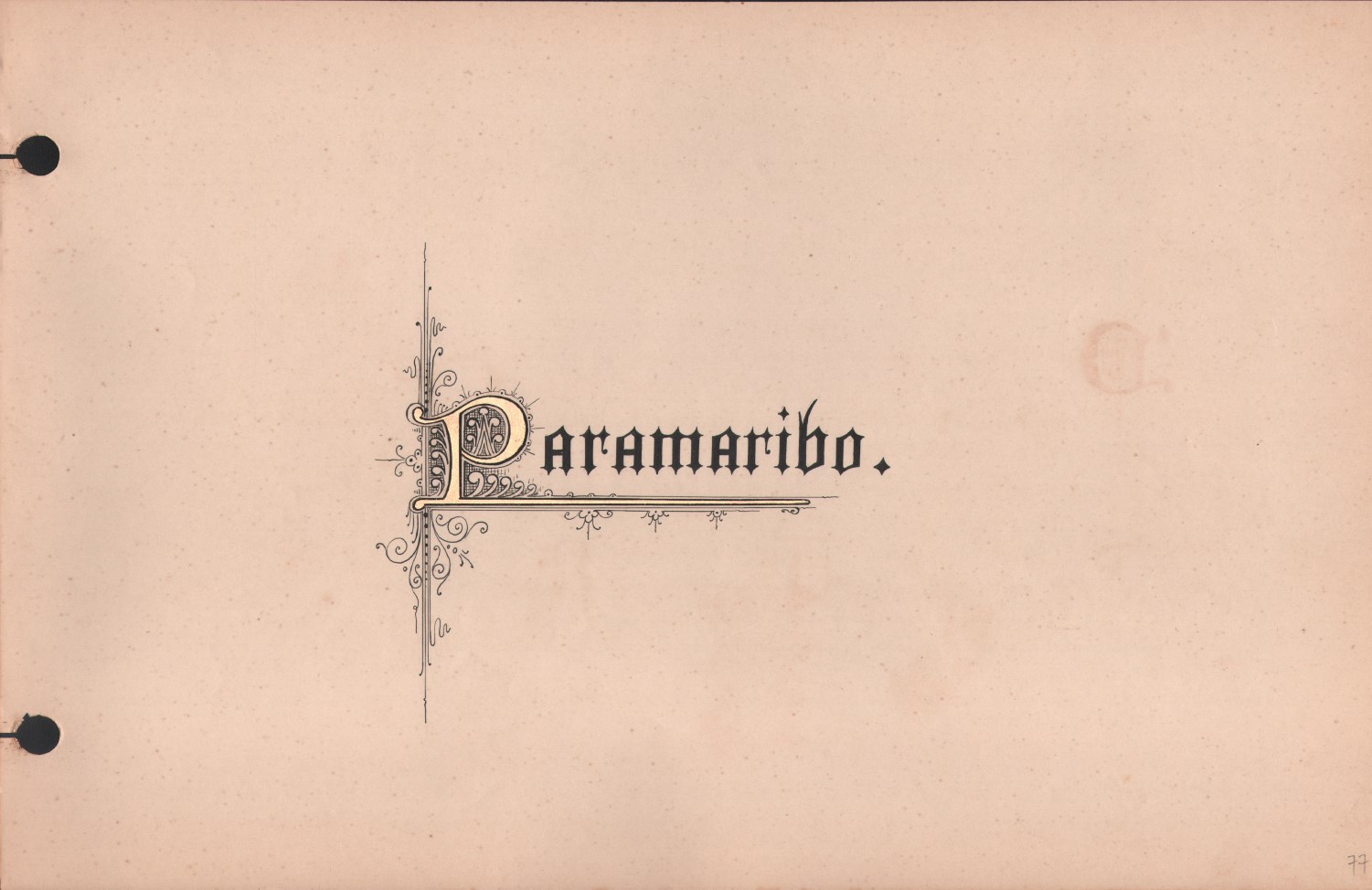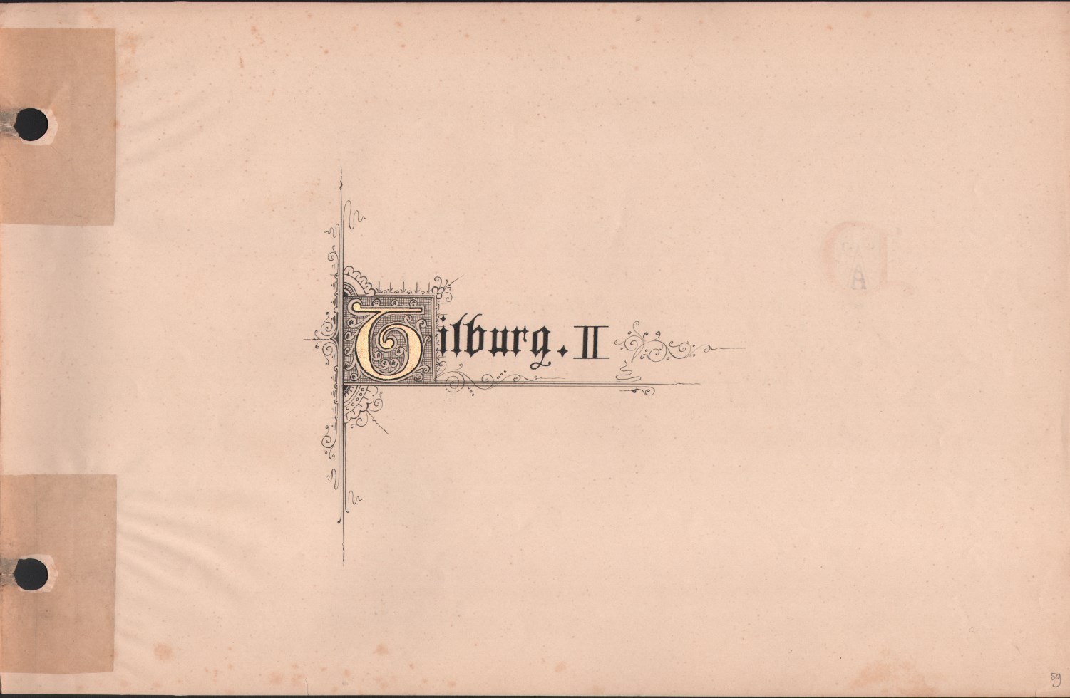 Album met tekeningen stichtingen congregatie van zusters van Liefde aangeboden aan Van Rossum. Band van Indisch weefsel met gouddraad. 1r: blanco 1v: blanco 2r: Blad met rijkversierde letters met de tekst: Aan Zijne Eminentie Kardinaal W.M. van Rossum onzen hoogvereerden Protector op het Gouden Jubelfeest van Zijne Professie in de Congregatie van den Allerheiligsten Verlosser ...