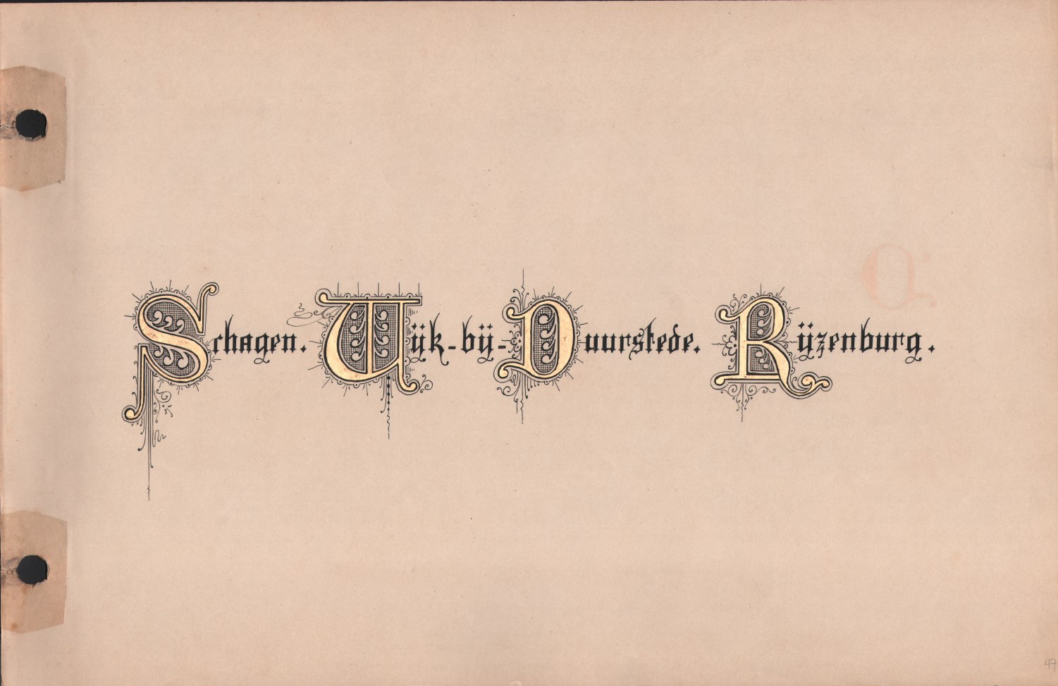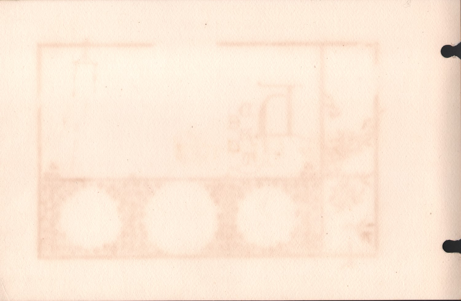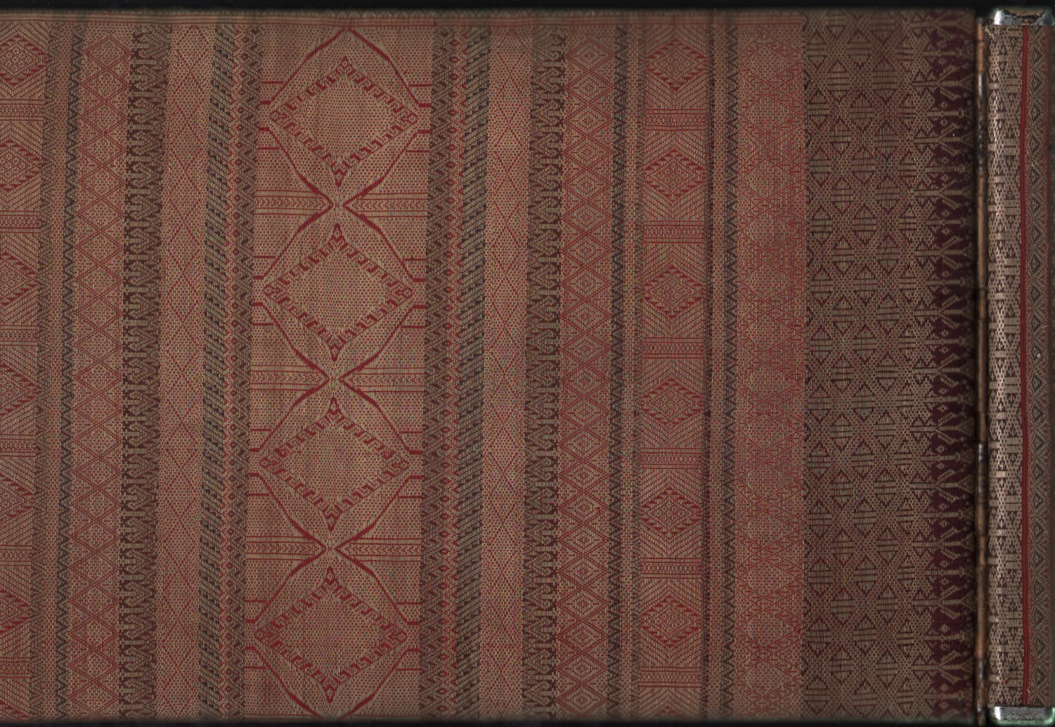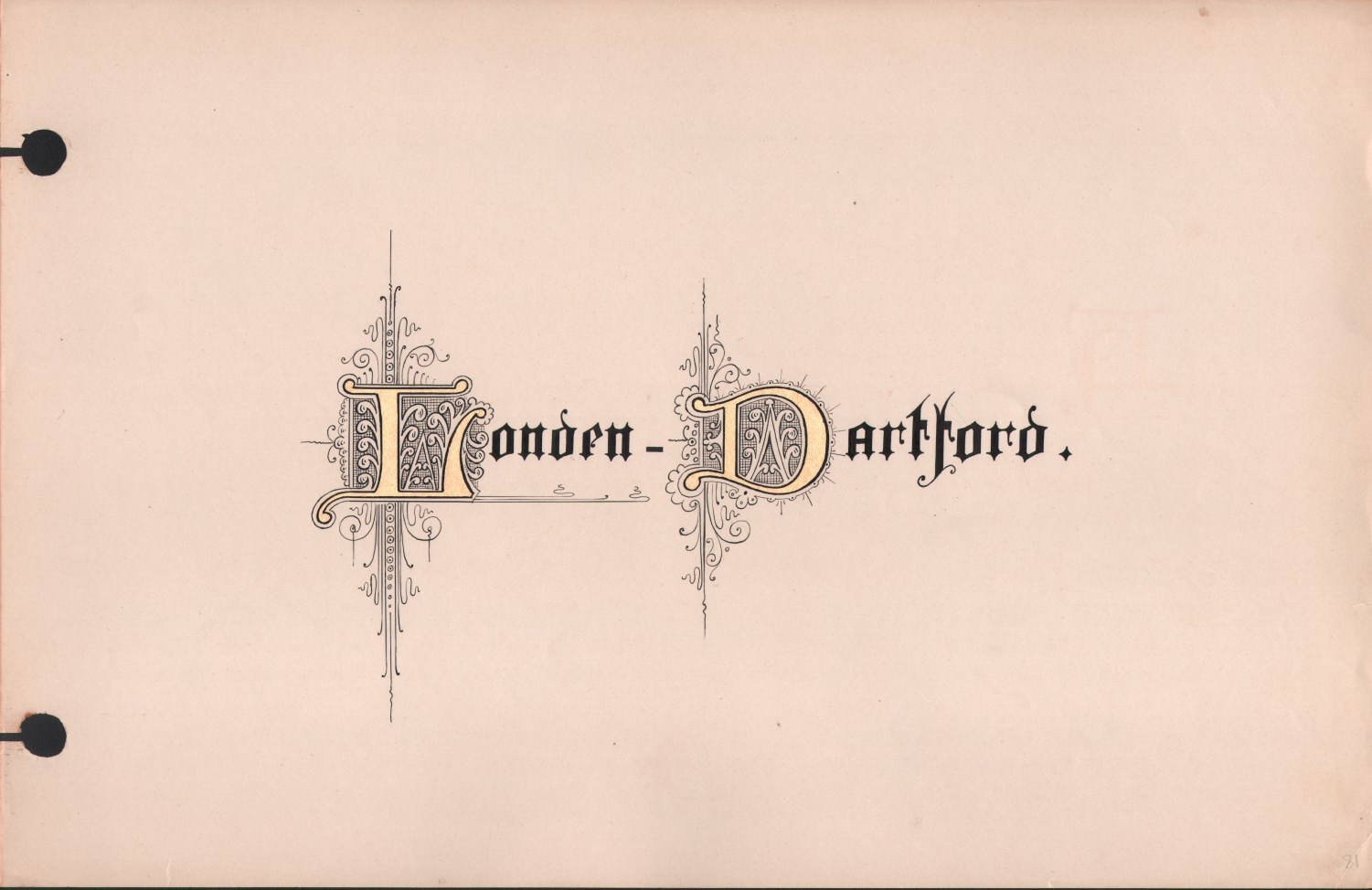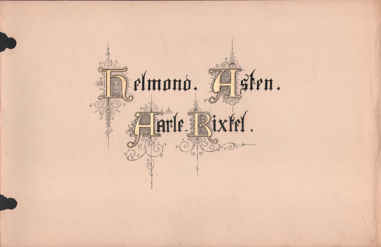 Album met tekeningen stichtingen congregatie van zusters van Liefde aangeboden aan Van Rossum. Band van Indisch weefsel met gouddraad. 1r: blanco 1v: blanco 2r: Blad met rijkversierde letters met de tekst: Aan Zijne Eminentie Kardinaal W.M. van Rossum onzen hoogvereerden Protector op het Gouden Jubelfeest van Zijne Professie in de Congregatie van den Allerheiligsten Verlosser ...