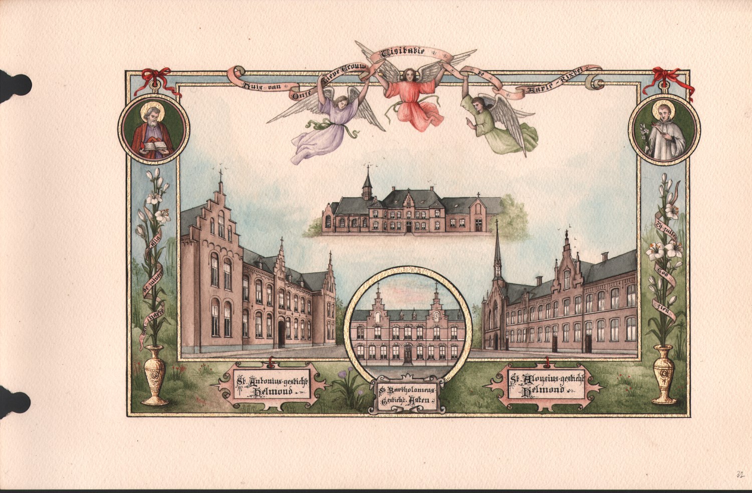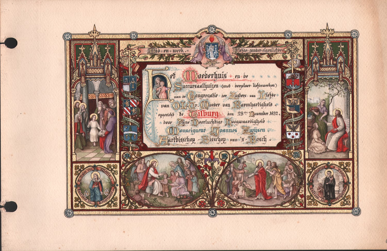 Album met tekeningen stichtingen congregatie van zusters van Liefde aangeboden aan Van Rossum