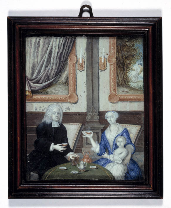 Portret van ds. Gustaaf van den Heuvel, Hermina Lijnslager en hun dochter Hermina Hendrika