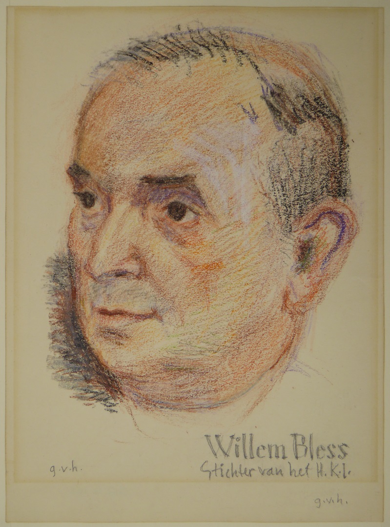 Portret van Willem Bless SJ met "Willem Bless stichter van het H.K.I."