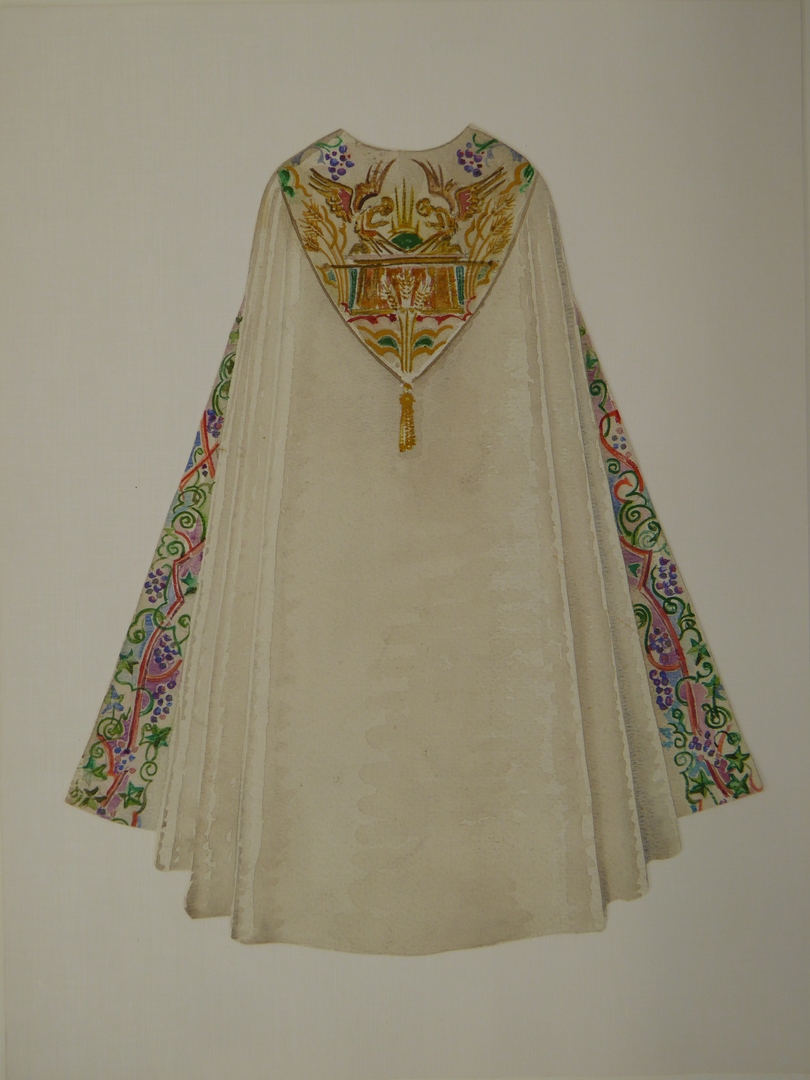 Ontwerp koorkap met de aanbidding door engelen van het sacrament