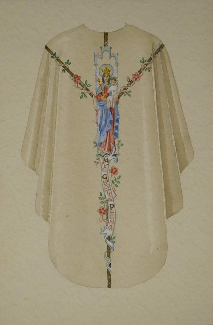 Ontwerp kazuifel met gekroonde Maria met Christuskind