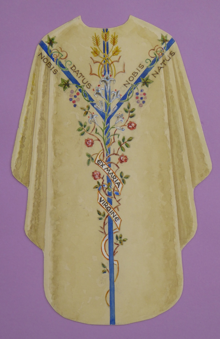 Ontwerp kazuifel met blauw gaffelkruis