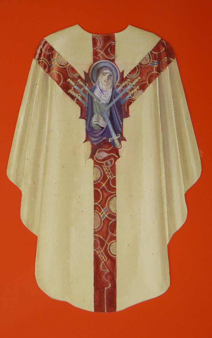 Ontwerp wit kazuifel met Onze Lieve Vrouw van zeven smarten