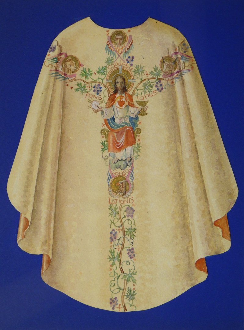 Ontwerp wit kazuifel met Heilig Hart-Christus