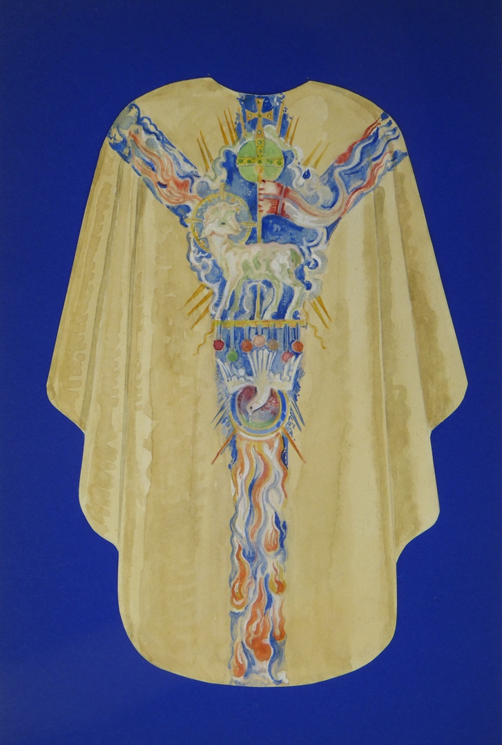 Ontwerp wit kazuifel met de H. Drie-eenheid