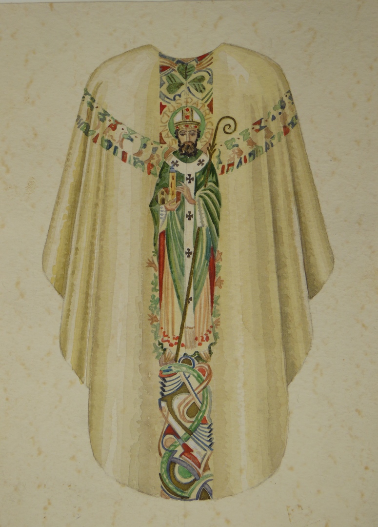 Ontwerp wit kazuifel met een afbeelding van bisschop S. Patricius