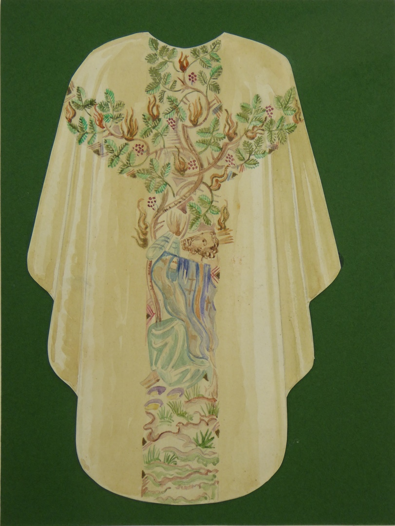 Ontwerp wit kazuifel met Mozes en het brandende braambos