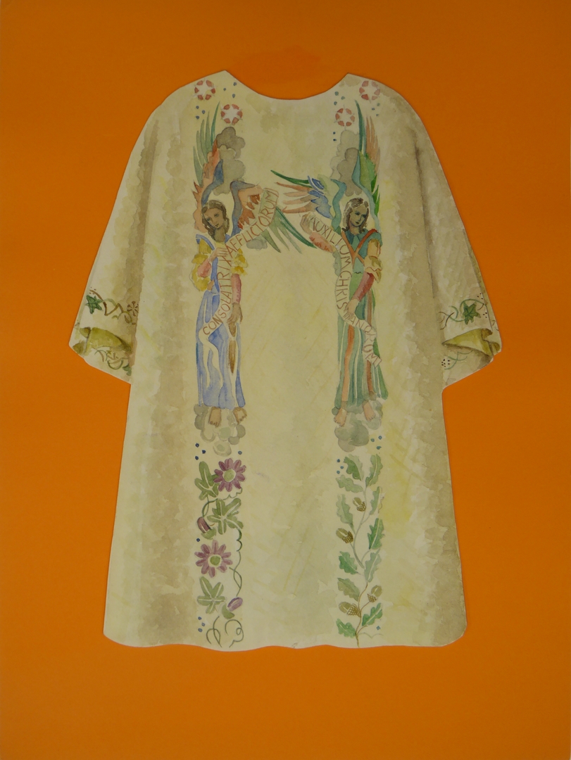 Ontwerp witte dalmatiek met de symbolen van Maria