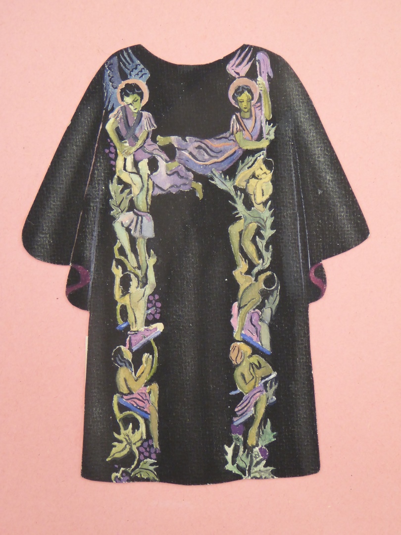 Ontwerp zwarte dalmatiek met engelen en zielen op de jongste dag