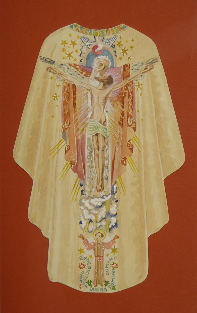 Ontwerp kazuifel met als decoratie de drievuldigheid