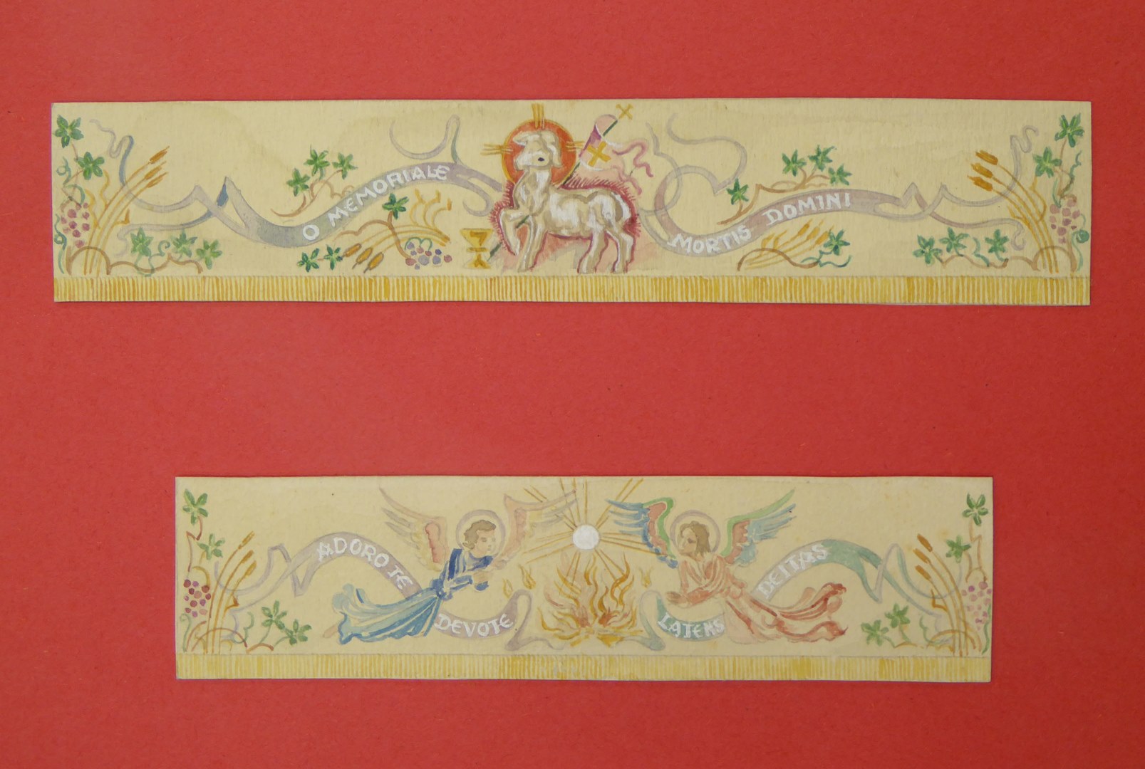 Ontwerp twee antependia, met de aanbidding van het sacrament, en het Lam Gods
