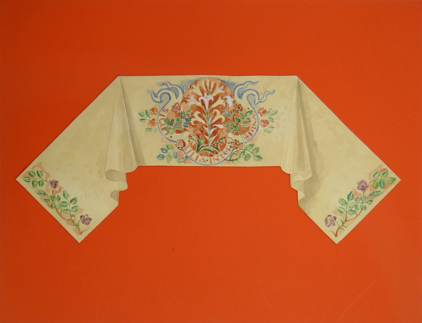 Ontwerp benedictievelum met vierpas en tekst sicut lilia inter spinas