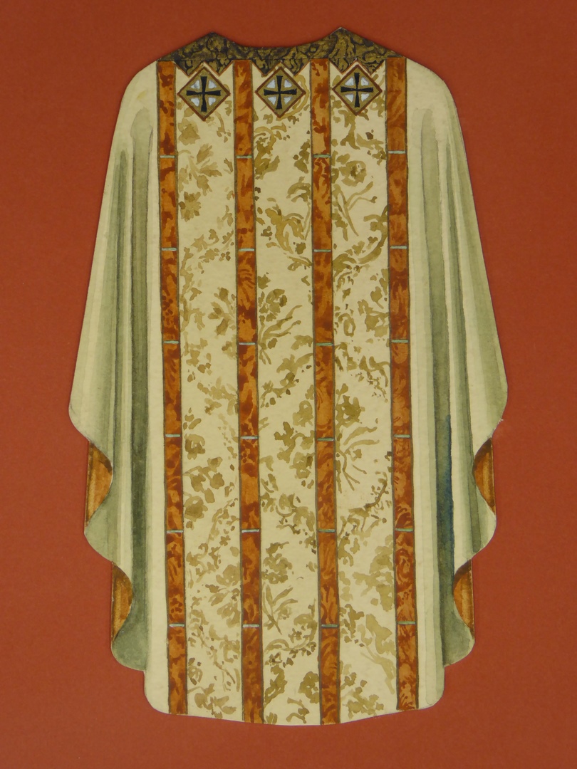 Ontwerp wit kazuifel met drie gemarmerde banen