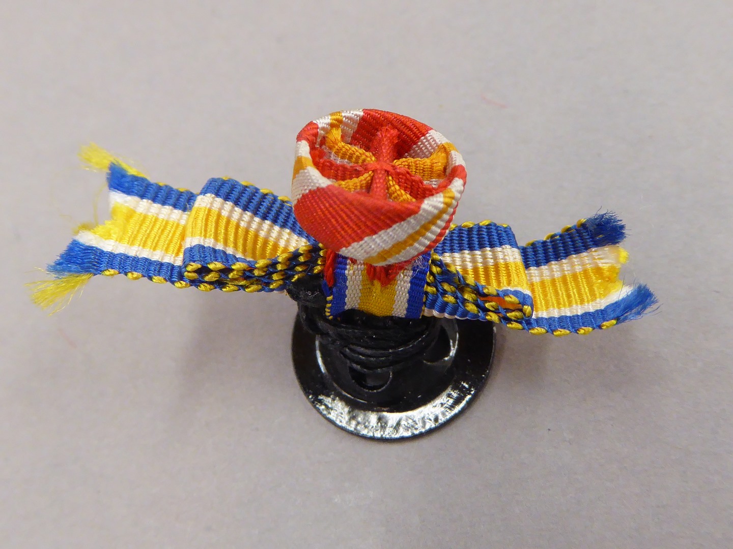 Strikje, pro ecclesia et pontifice (rozet) met Oranje Nassau (rood-wit-geel/geel-wit-blauw)