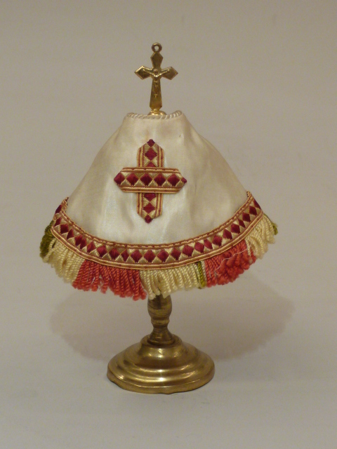 Wit speelgoedciboriekleed met kruis en gekleurde franje