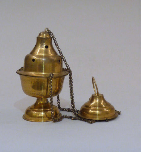 Goudkleurig speelgoedwierookvat met acht rookgaatjes in deksel