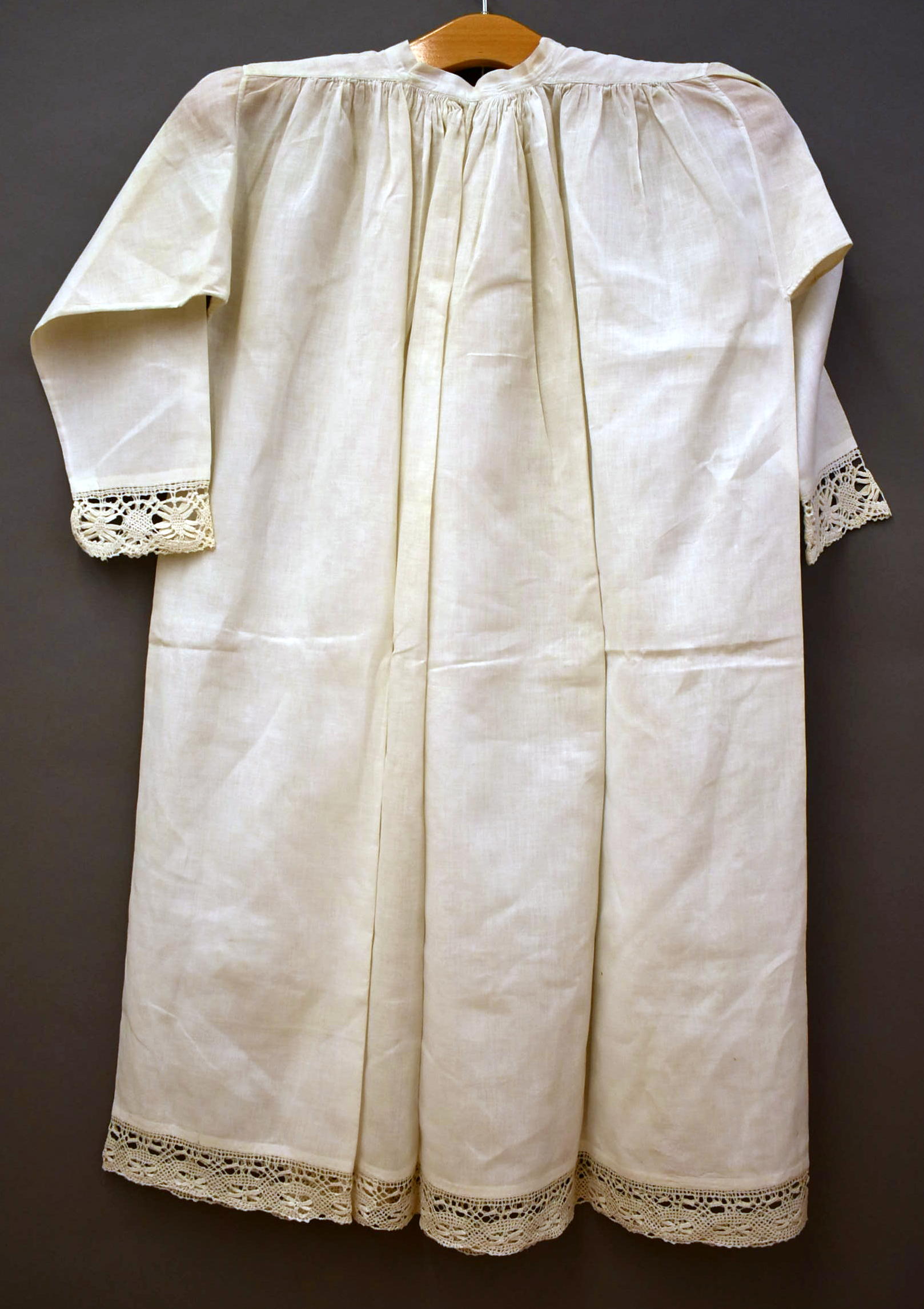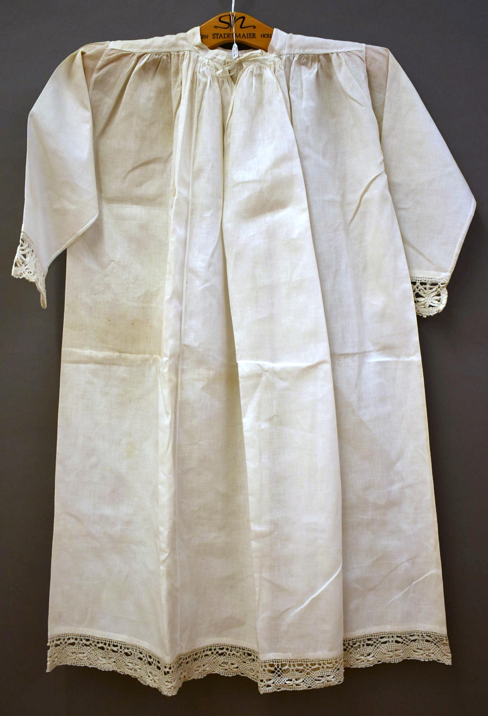 Witte kinderalbe met kantrand aan mouwen en onderkant