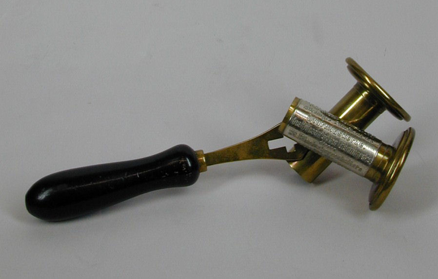 Kaarsenhouder voor de twee kaarsen van de Blasiuszegen met "Carl Rübsam, Fulda ..."